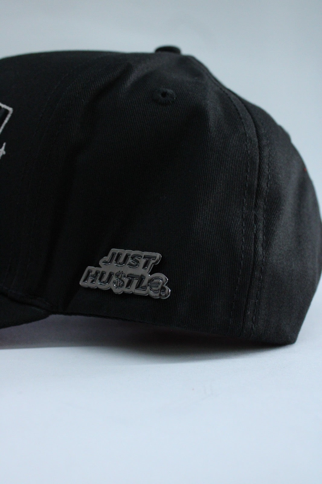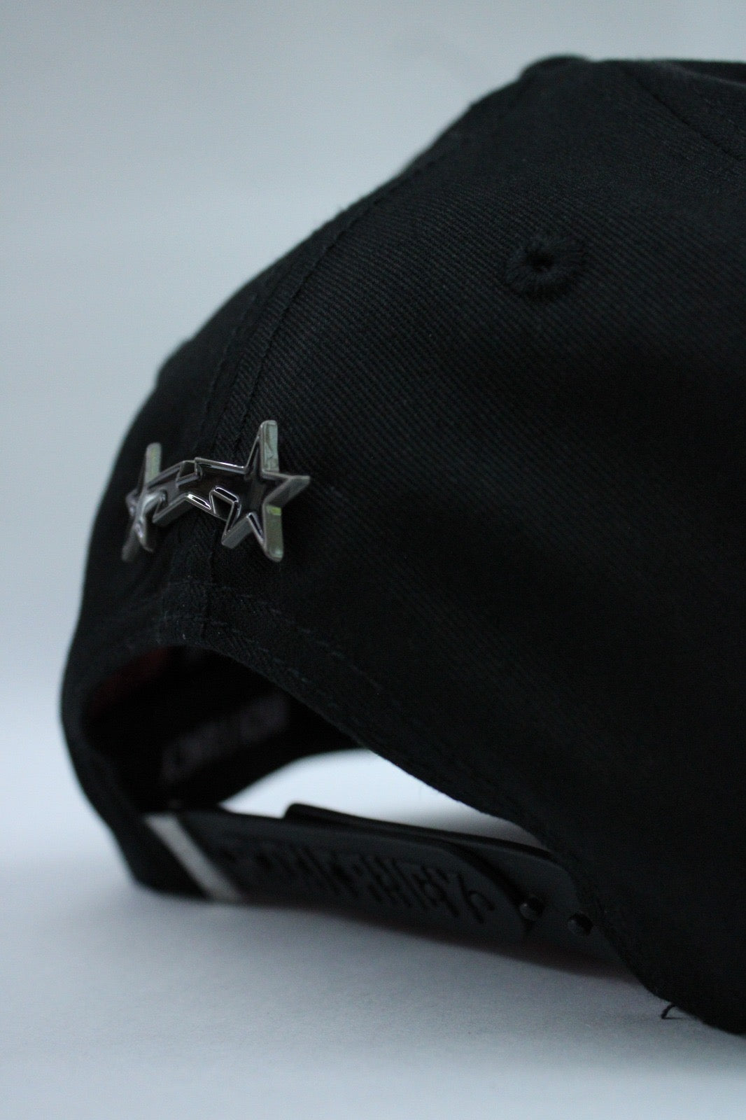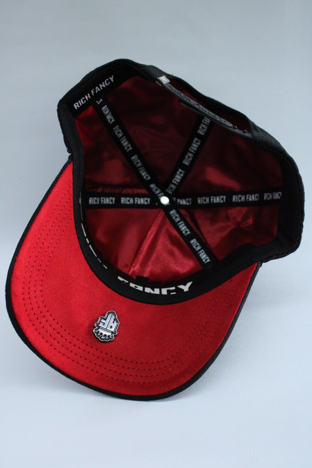 Gorra total black con ese toque elegante rojo en la parte interior con el pin metálico representativo de la marca 🚀